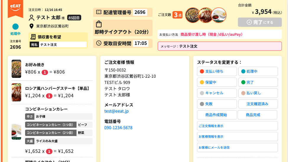 商品のお渡しが完了したらステータスを「完了」に変更してください。