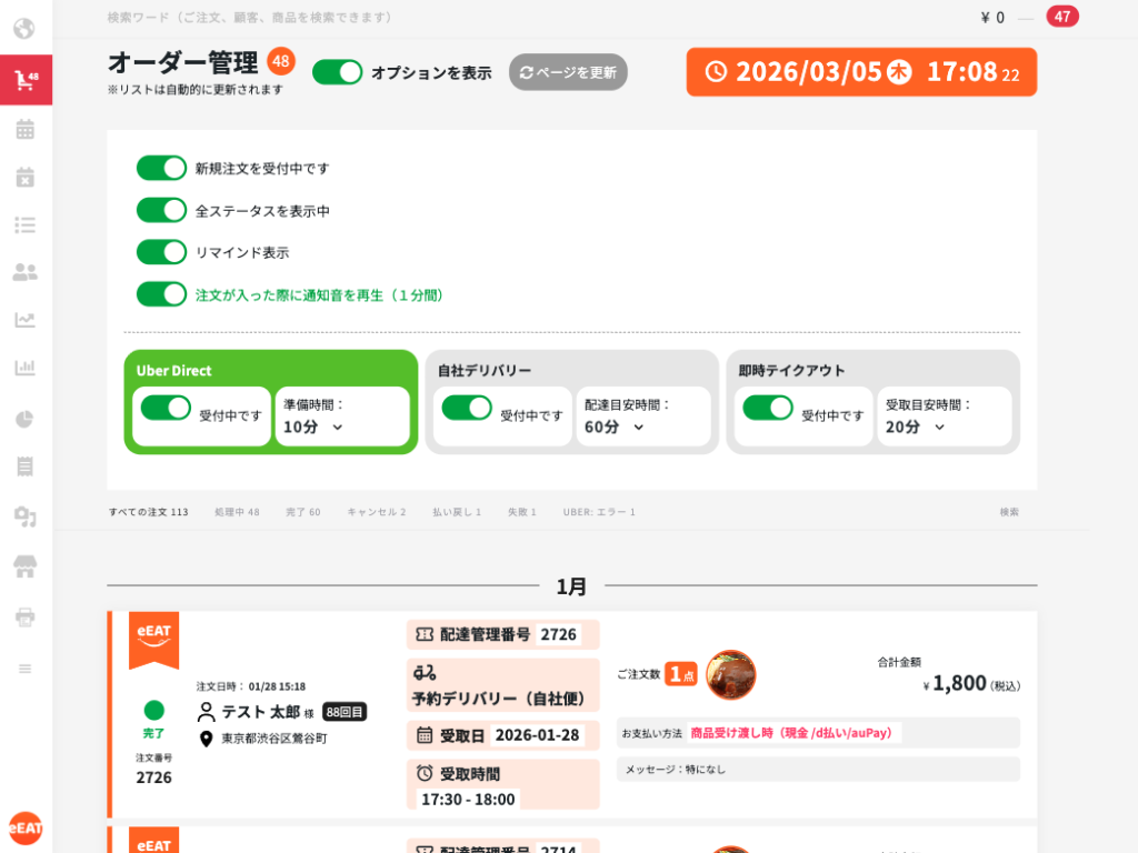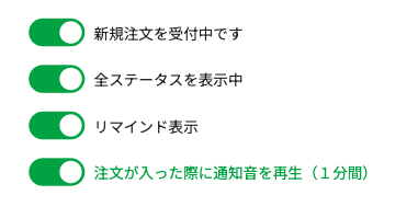 • 注文が入った際に通知音を再生がグリーンになっているか