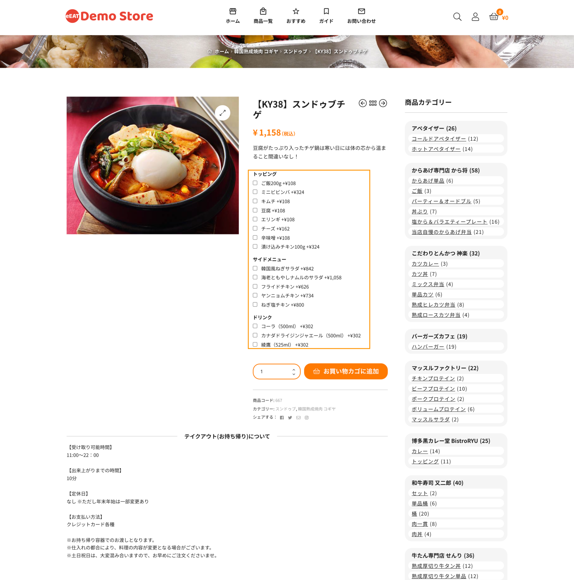 登録内容によっては、商品一覧ページは表示されず「テイクアウト」「デリバリー」などページが分かれる場合がございます。