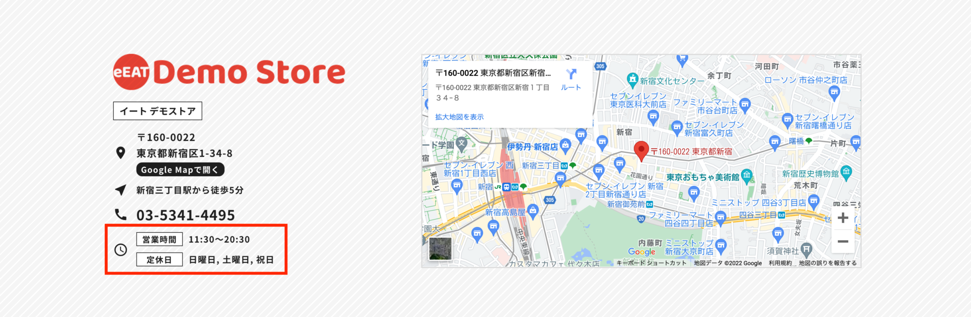• 店舗情報で設定した定休日と営業時間はこちらのフッターに反映されます。