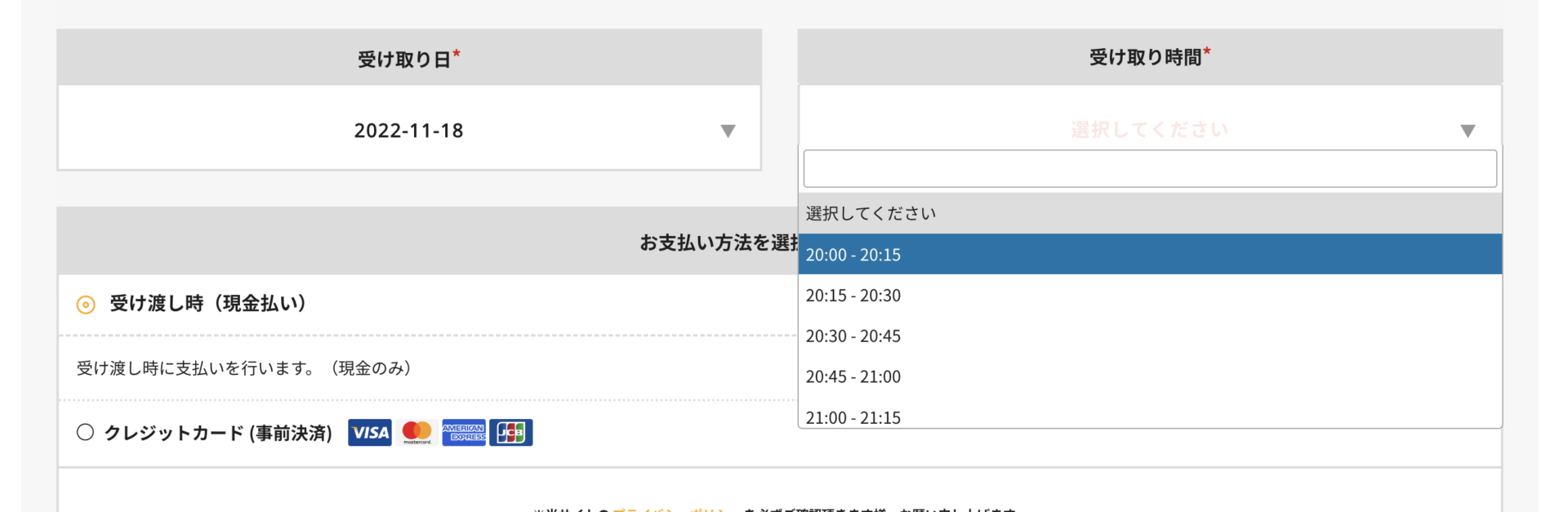• 決済画面の受け取り日時の設定変更には定休日設定が必要です。