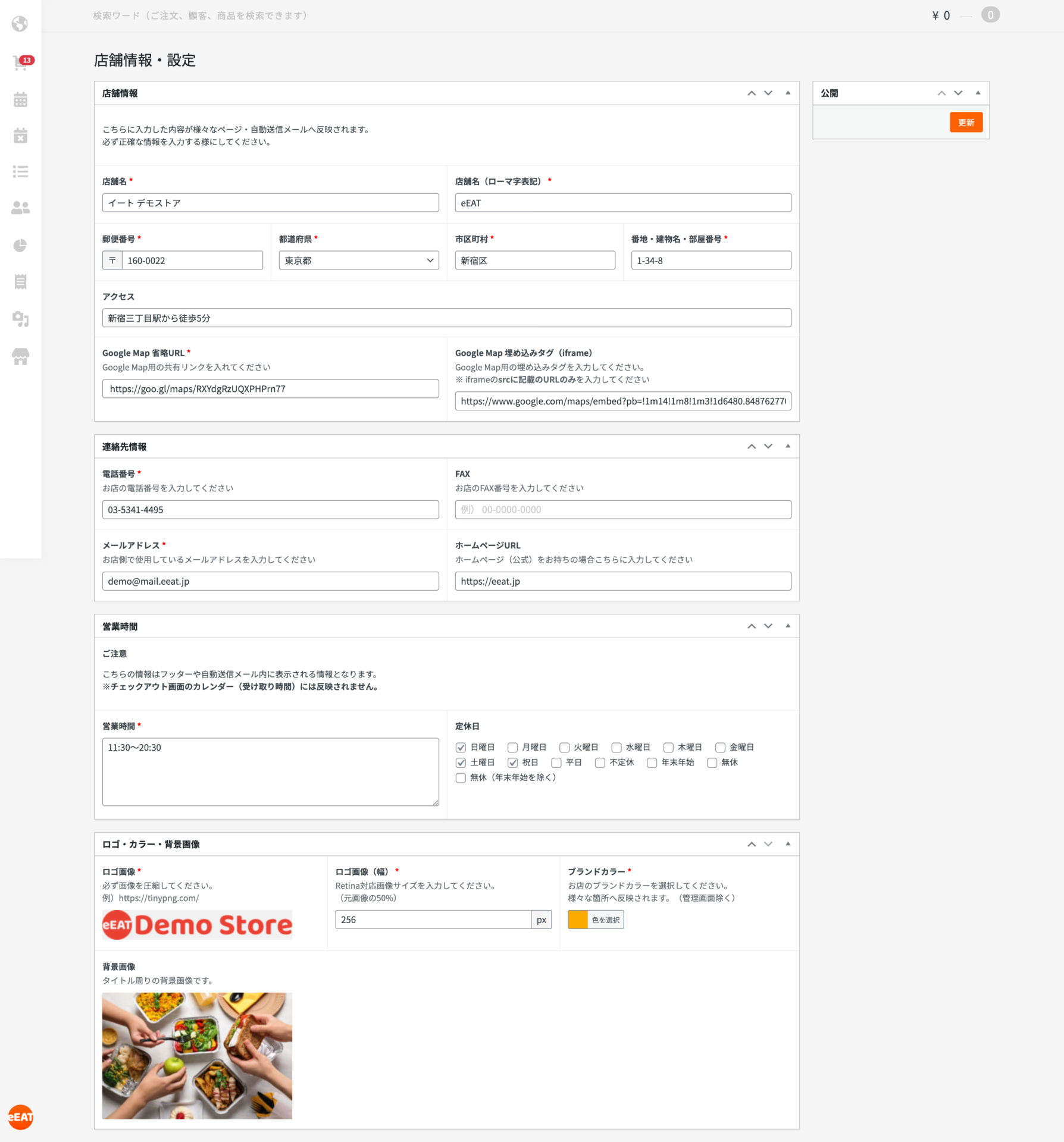 こちらで記入した営業時間と定休日の設定は注文ページのフッターにのみ反映されます。
