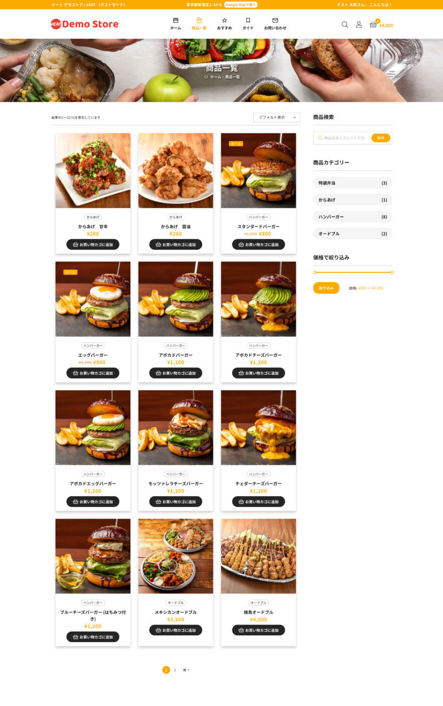 販売中の商品が表示されます。商品管理画面で商品の並び替えができます。設定方法はこちらから。