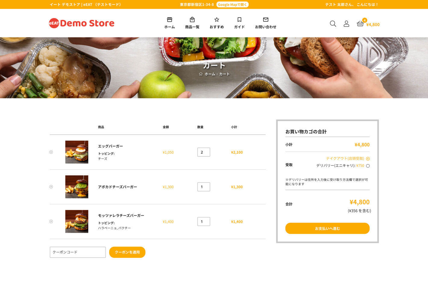 また、クーポンを設定している場合はこちらでクーポンコードを入力します。クーポン設定の詳細はこちら。